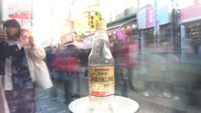 すると背景にしたスニーカーショップのショーウインドウはボケた画になってペットボトルが浮き立った。